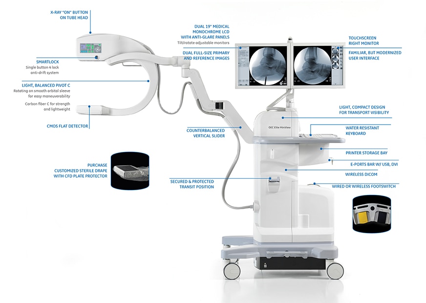 The OEC Elite MiniView can improve your mini C-arm experience by allowing you to: