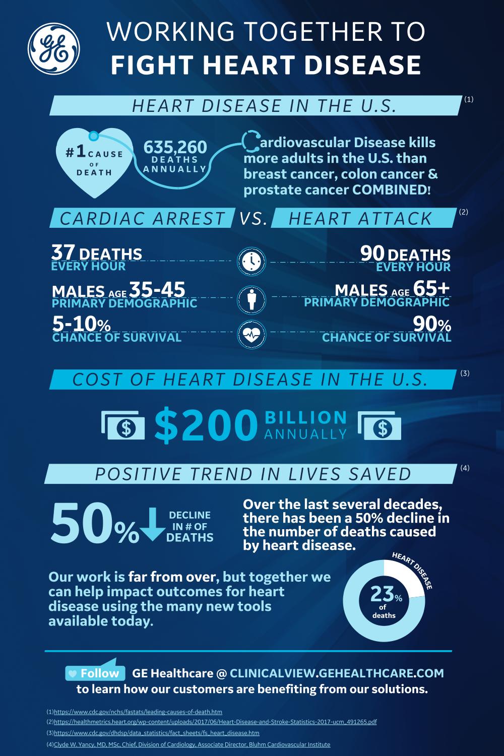 Heart disease is the leading cause of death in the United States, killing more 635,000 people every year. Here are some key facts about heart disease, and how GE Healthcare is working to fight it.